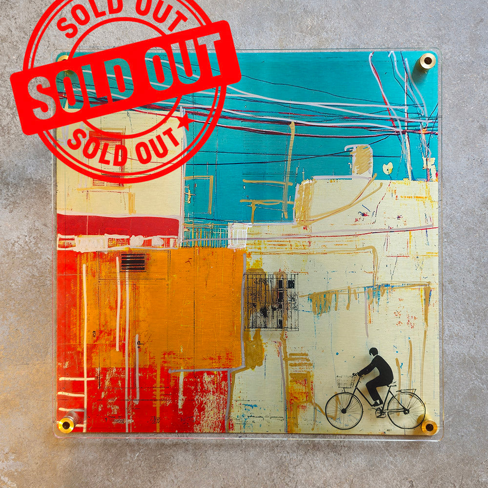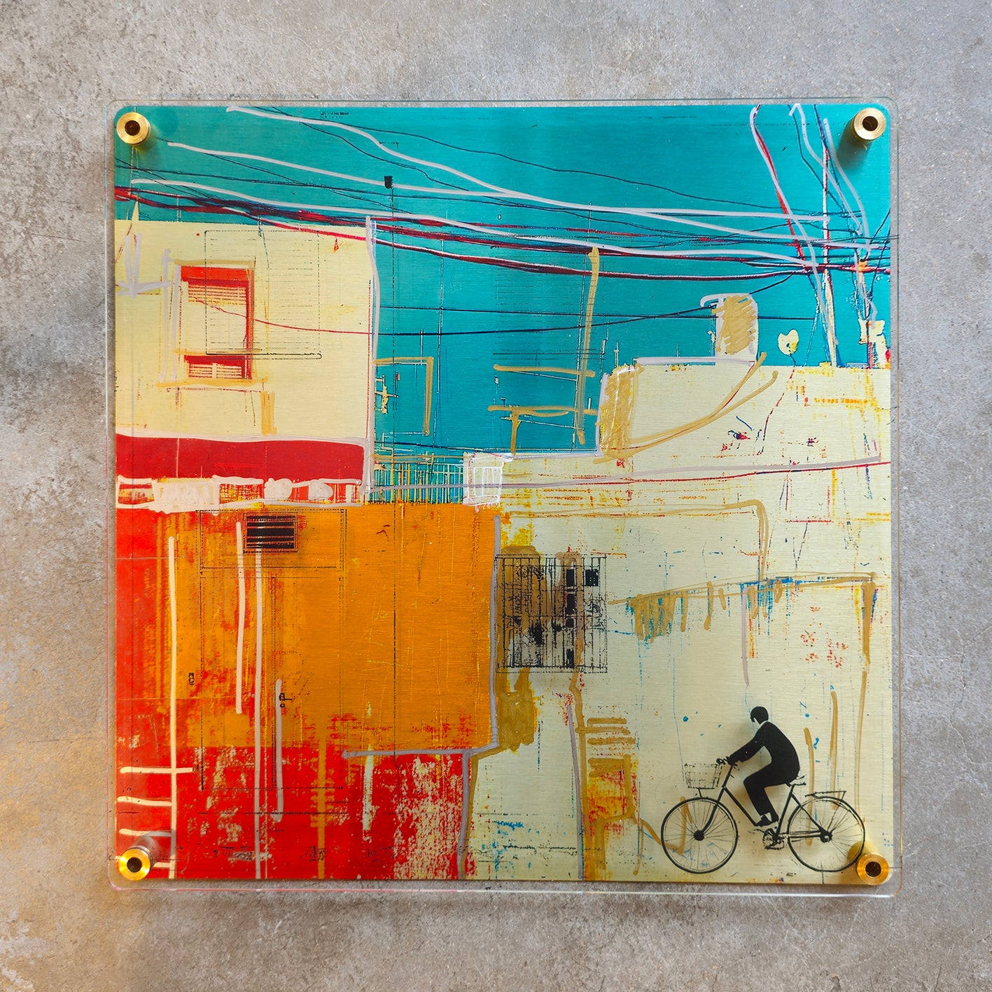טכניקה מעורבת בשכבות, הדפסה, מתכת, ציור, אקריל, 2 שכבות, AIגודל 30*30 ס"מ